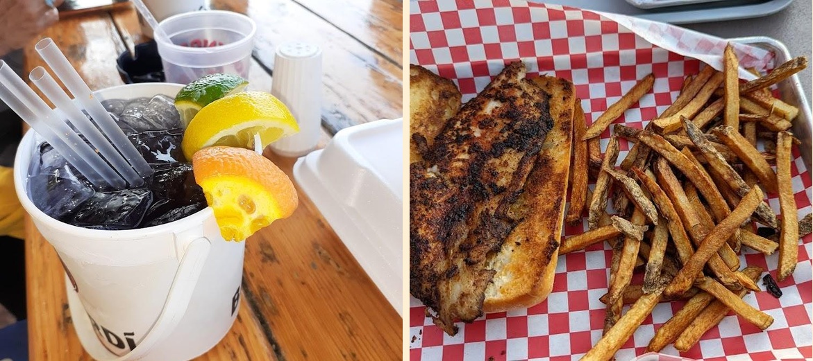 Don't miss the Jumbo Shrimp Stir Fry or the Crab Stuffed Grouper. The Baked Alaskan Salmon is also a popular choice. For something to share, try the Bucket of Fried Shrimp. Each dish showcases the freshness of local ingredients.